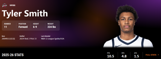 火箭下放了21岁新援泰勒-史密斯,他出现在发展联盟毒蛇队的阵容名单当中。另一名双向球员克劳福德目前正在代表毒蛇队打球,他同样没能参加火箭和太阳的比赛。