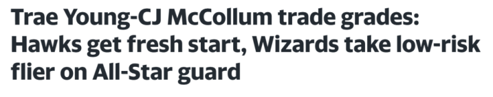 目前尚无法全面评判这笔交易,需看老鹰队如何利用新增的阵容灵活性。但就当下而言,这是一笔他们不得不做的交易。尽管有人质疑他们是否该在交易前进一步挖掘特雷-杨的价值,但他引领的时代显然已陷入停滞。这笔交易为老鹰队提供了冲击更高目标的新契机,球队果断送走核心球星的魄力值得肯定。