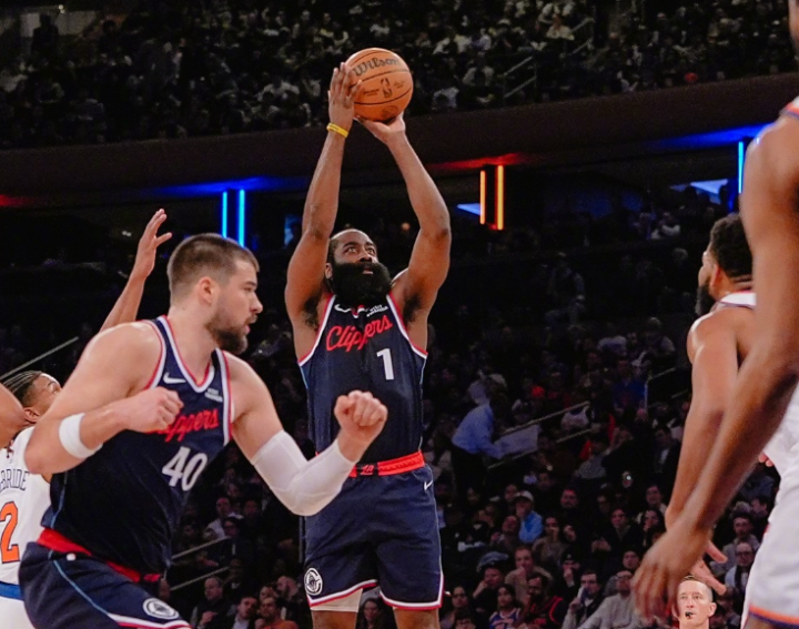 中段哈登和祖巴茨内外开花,尼克斯得分点不少,快船防守端也有些吃力。后半段小卡急停中投+反击三分百步穿杨,半场结束时,快船56-51尼克斯,小卡半场轰下21分!进入第三节,祖巴茨不断强攻上分,哈登突破挑篮,布伦森和阿努诺比下三分雨追上比分,伦纳德中投+哈登造犯规。后半段双方比分交替上升,巴图姆和哈登两记三分球很关键,大洛续上三分球,但快船内线失守,布里奇斯+克拉克森+米罗把快船内线打穿!三节打完,快船87-90尼克斯。决战第四节,唐斯继续强攻+补篮,尼克斯拉开9分差距。